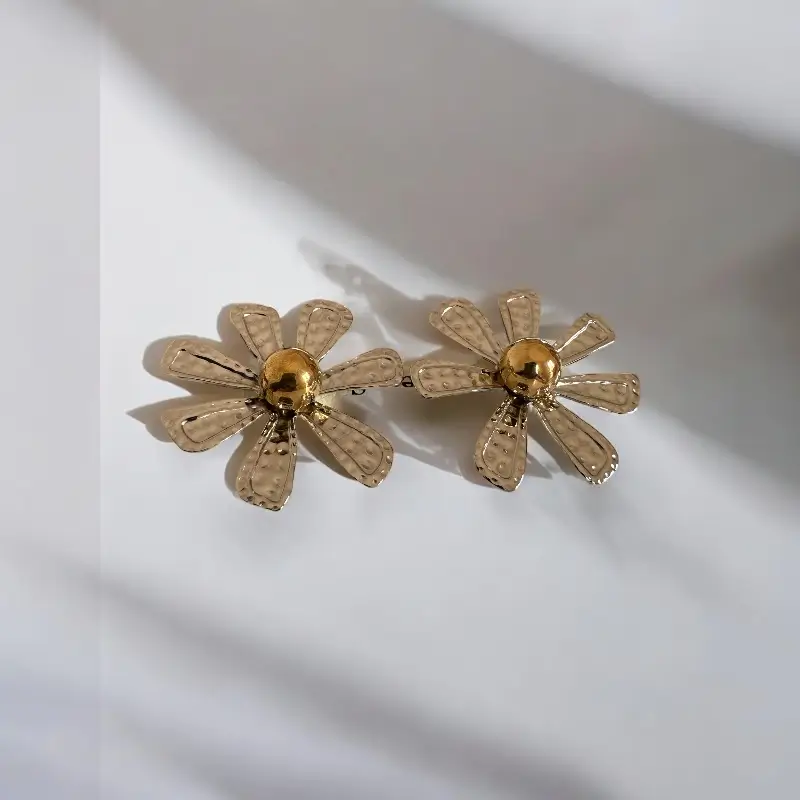 Σχέδιο: Καρφωτά σκουλαρίκια σε σχήμα λουλουδιού με ανάγλυφο σχέδιο