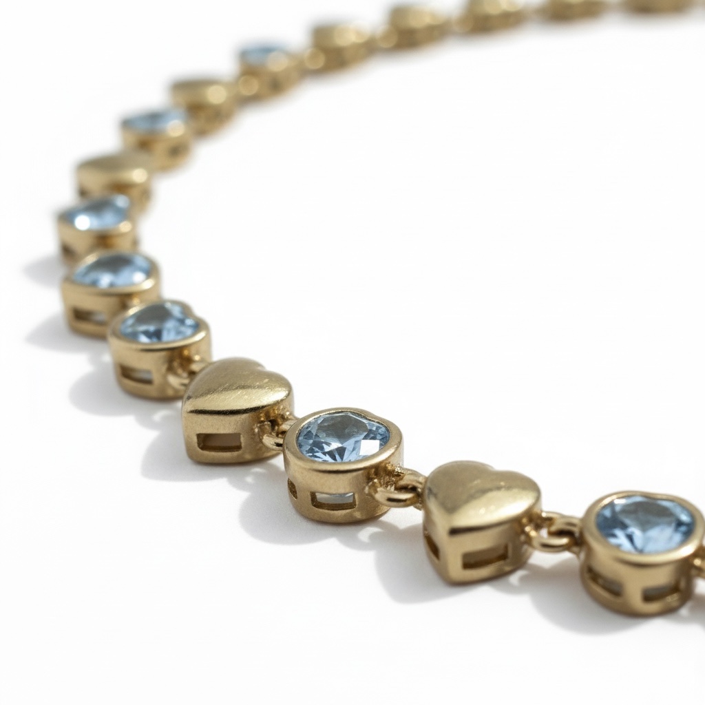 • Κολιέ με εναλλαγή καρδιών και γαλάζιων πετρών