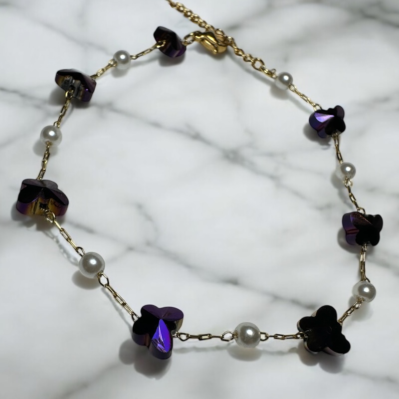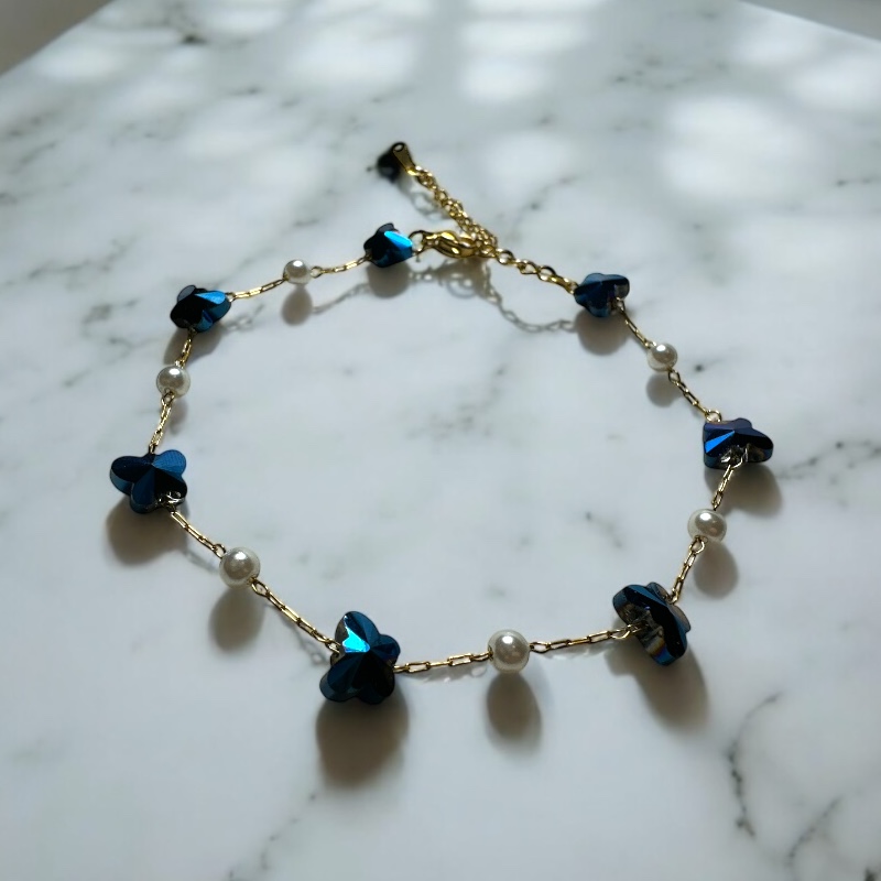 Το Butterfly Glow Anklet χαρίζει ρομαντισμό και λάμψη σε κάθε εμφάνιση. Οι ιριδίζουσες πεταλούδες και οι πέρλες δημιουργούν ένα ονειρικό, κοριτσίστικο look, ιδανικό για το καλοκαίρι αλλά και για layering με άλλα anklets. Φόρεσέ το ξυπόλυτη στην παραλία ή με sneakers στην πόλη – είναι το απόλυτο go-to κομμάτι