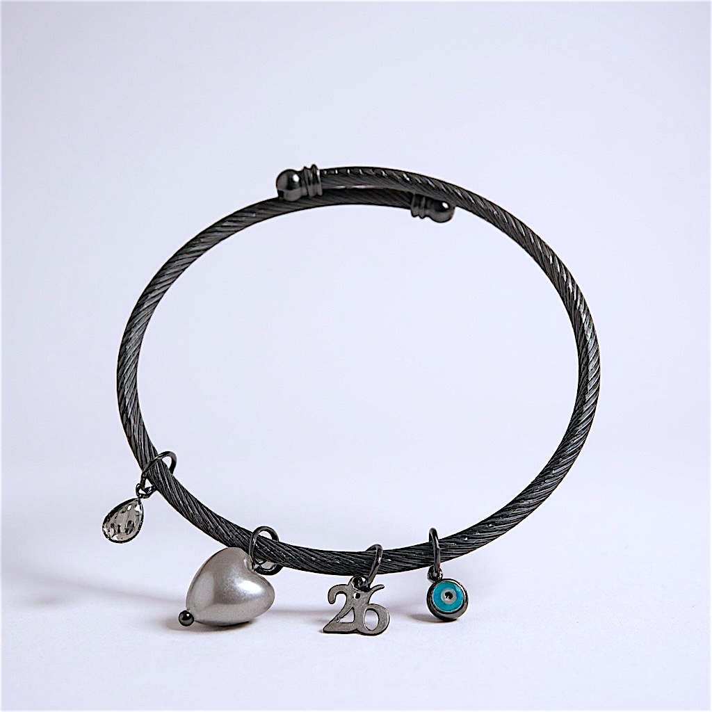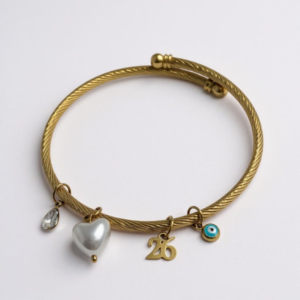 • Charm βραχιόλι με καρδιά, ματάκι και αριθμό 2026