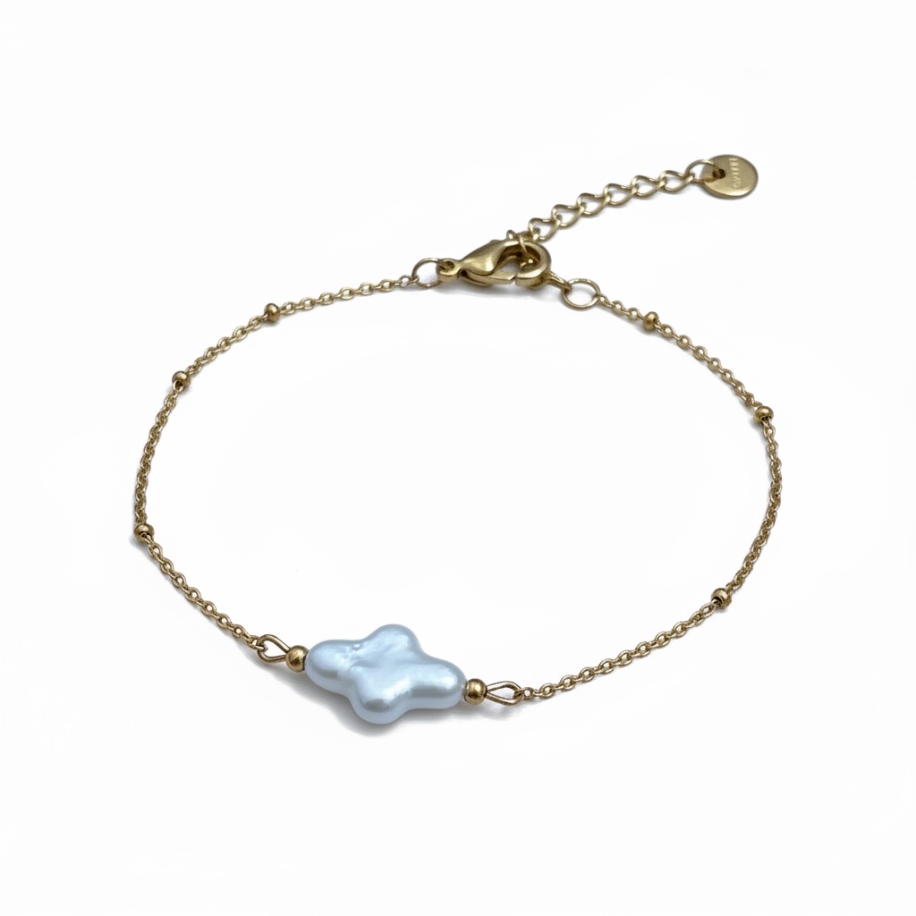 Το Cloud Pearl Bracelet αποπνέει ηρεμία και απαλότητα, με ένα μοναδικό περλέ στοιχείο σε σχήμα σύννεφου που θυμίζει καθαρό ουρανό και θετική ενέργεια. Η λεπτή χρυσή αλυσίδα αγκαλιάζει κομψά τον καρπό, ενώ το minimal design το καθιστά ιδανικό τόσο για καθημερινές εμφανίσεις όσο και για layering με άλλα βραχιόλια. Κατασκευασμένο από ανοξείδωτο ατσάλι, ανθεκτικό στο νερό και στον χρόνο.