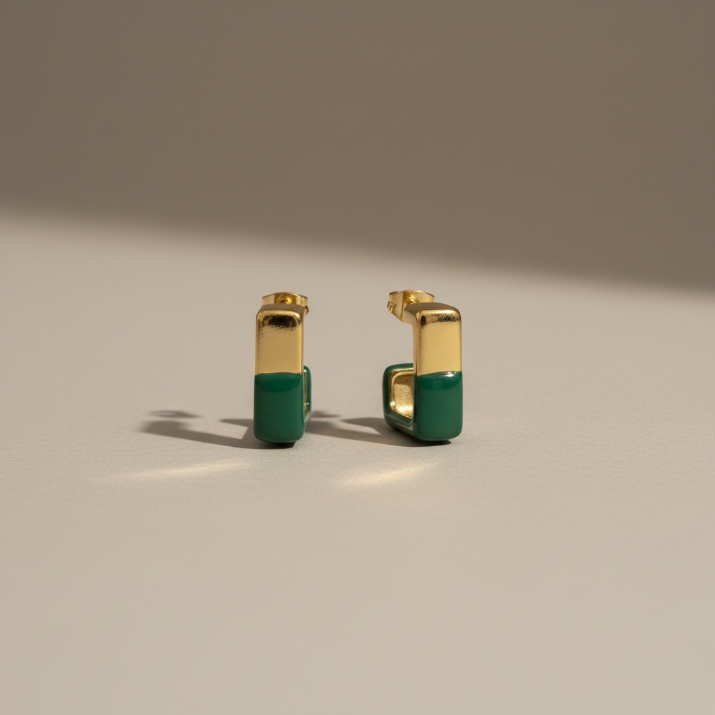 Τα Emerald Edge Hoops είναι η τέλεια επιλογή για όσες θέλουν να προσθέσουν χρώμα και στυλ στις εμφανίσεις τους χωρίς υπερβολές. Ο γεωμετρικός σχεδιασμός τους σε τετράγωνη γραμμή συνδυάζεται με μια κομψή πράσινη λεπτομέρεια, δημιουργώντας ένα αποτέλεσμα που είναι ταυτόχρονα μοντέρνο και elegant.