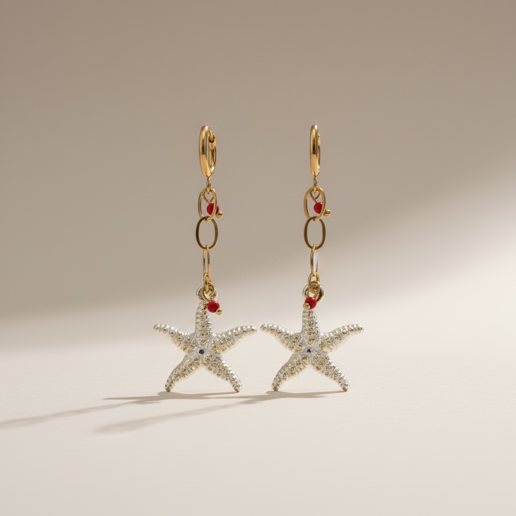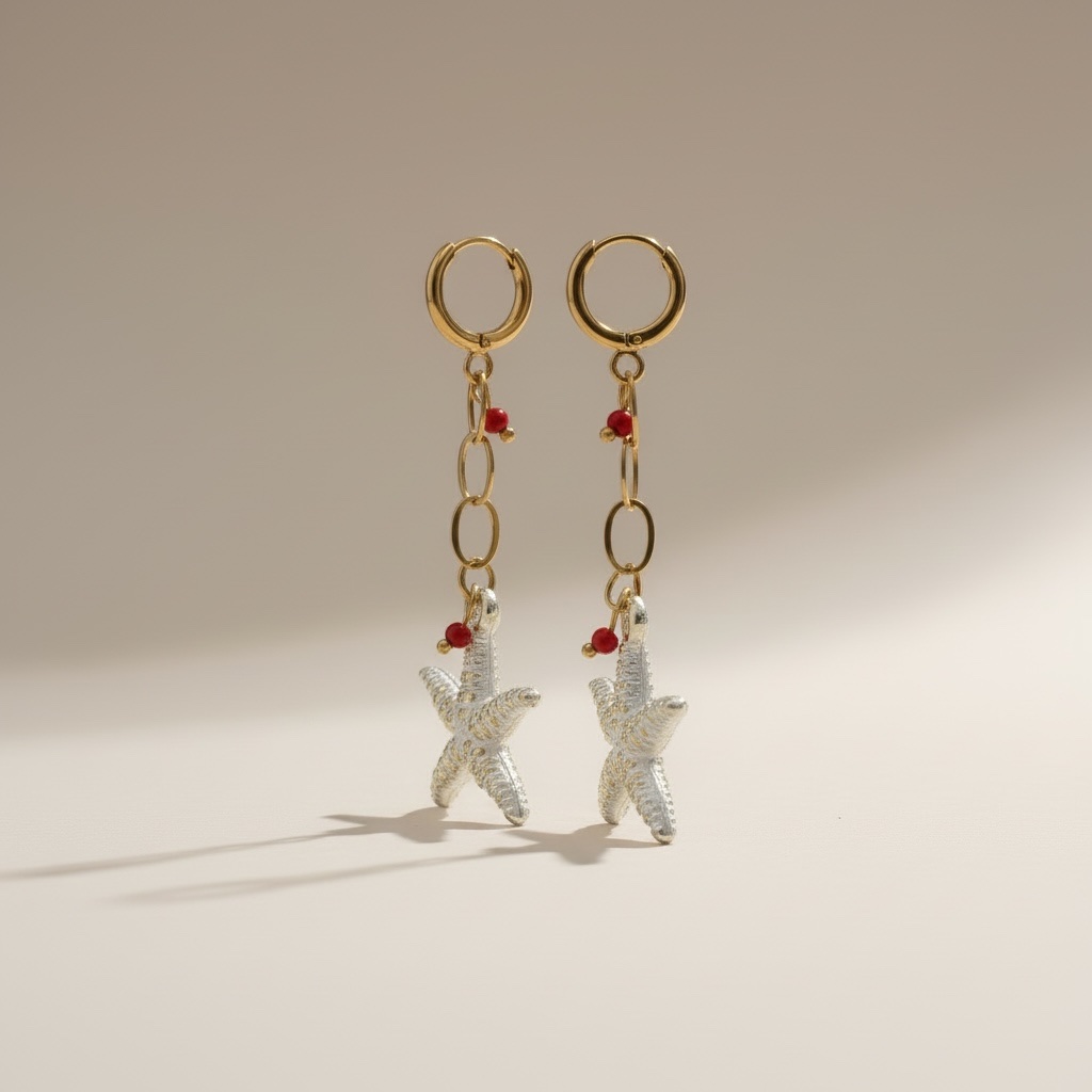 Τα Golden Coral Starfish Chain Earrings αποπνέουν καλοκαιρινή φρεσκάδα και κομψότητα. Ο αστερίας σε συνδυασμό με τις κόκκινες λεπτομέρειες δημιουργεί ένα μοναδικό αποτέλεσμα που θυμίζει θάλασσα και καλοκαιρινές αποδράσεις.
