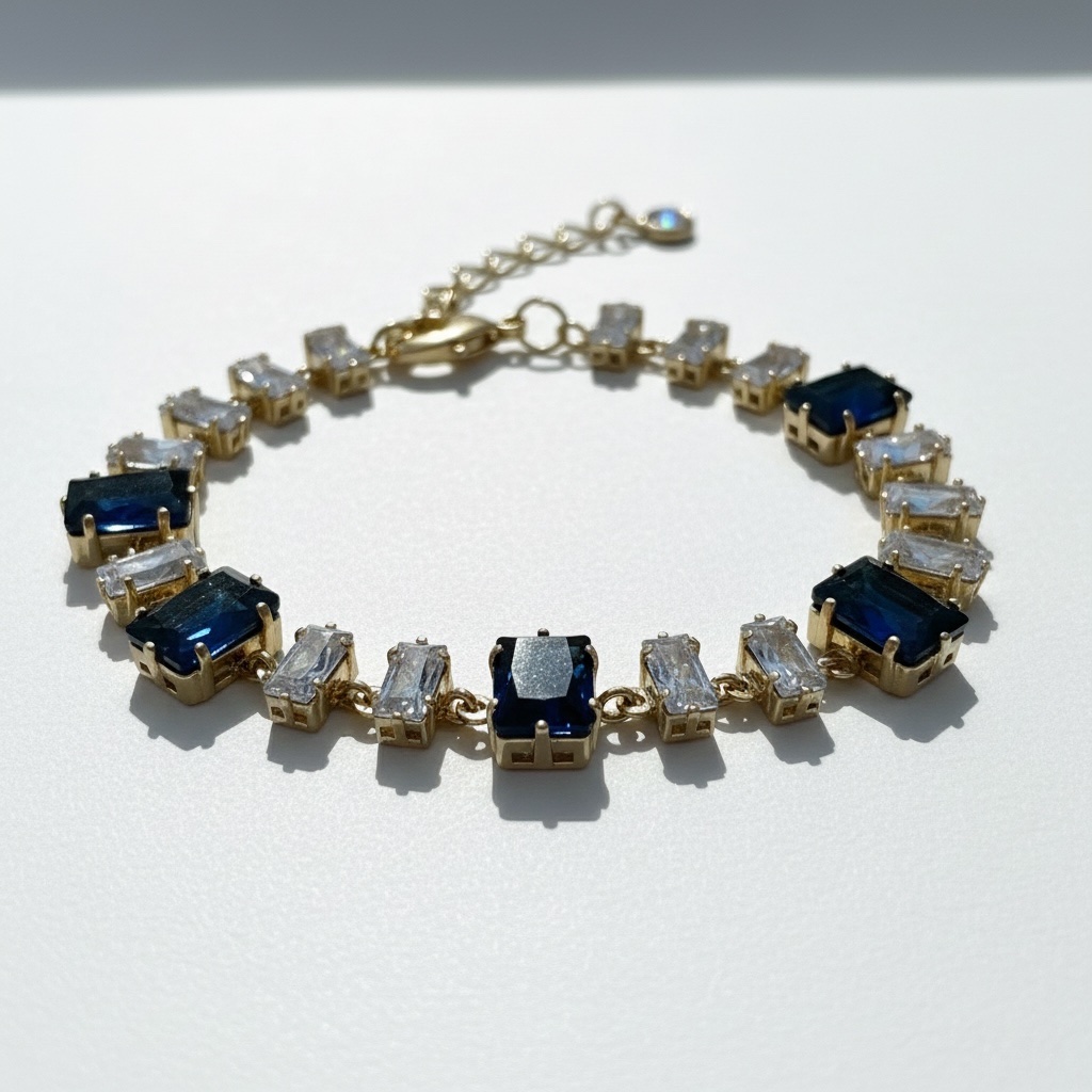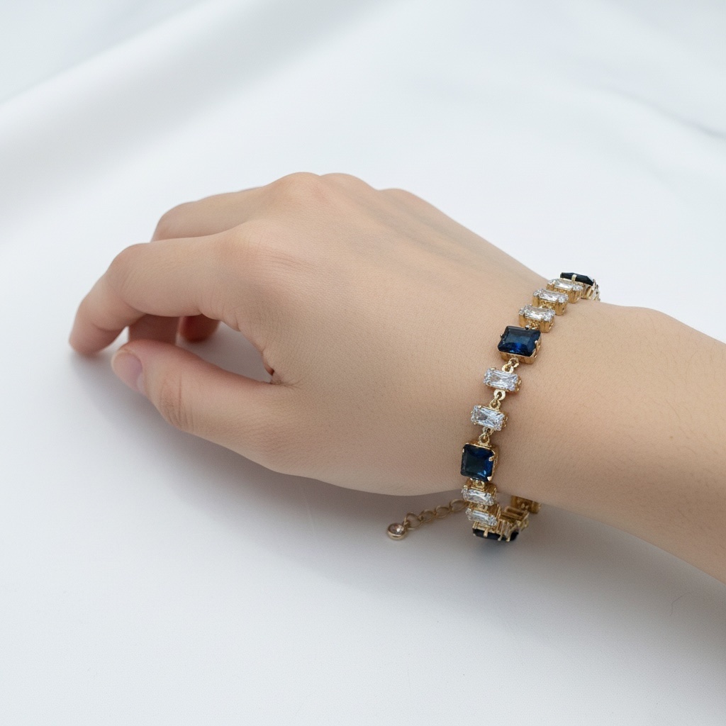 Το Midnight Blue Elegance Bracelet αποπνέει μυστήριο και διαχρονική κομψότητα, με βαθιές μπλε πέτρες που θυμίζουν νυχτερινό ουρανό.