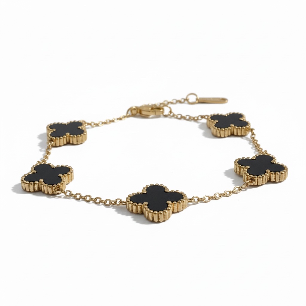 Το Midnight Clover Bracelet αποπνέει διακριτική πολυτέλεια και δυναμικό χαρακτήρα. Ο συνδυασμός του βαθύ μαύρου με το χρυσό περίγραμμα δημιουργεί ένα κόσμημα που ξεχωρίζει χωρίς υπερβολή. Ιδανικό για καθημερινή χρήση αλλά και για πιο βραδινές εμφανίσεις, χάρη στο minimal design και την ανθεκτικότητα του ανοξείδωτου ατσαλιού. Ένα κομμάτι που συμπληρώνει κάθε look με κομψότητα.