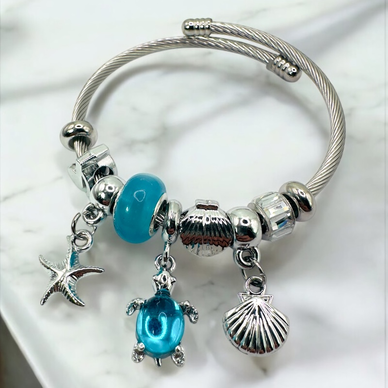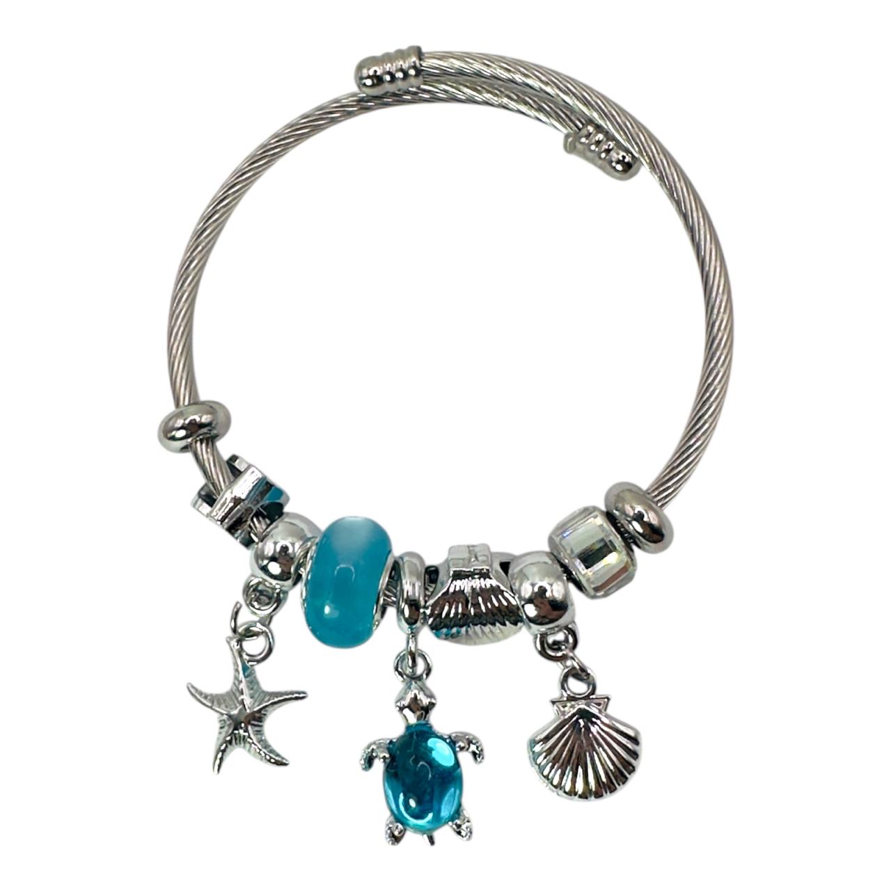 Απαλό και καλοκαιρινό, αυτό το βραχιόλι σε ταξιδεύει σε παραλίες και κρυστάλλινα νερά. Οι θαλάσσιες λεπτομέρειες το κάνουν ξεχωριστό για κάθε beach look.