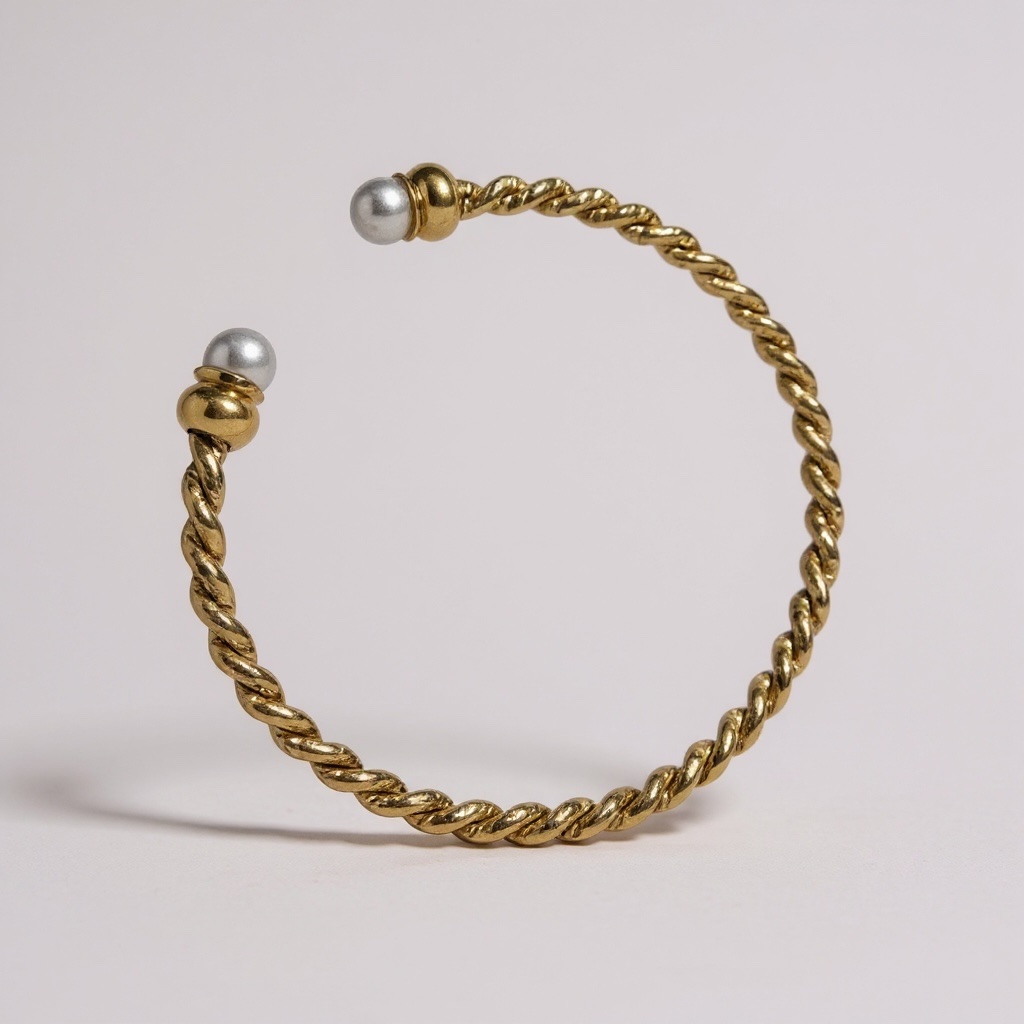• Βραχιόλι cuff με twisted σχέδιο και πέρλες στα άκρα