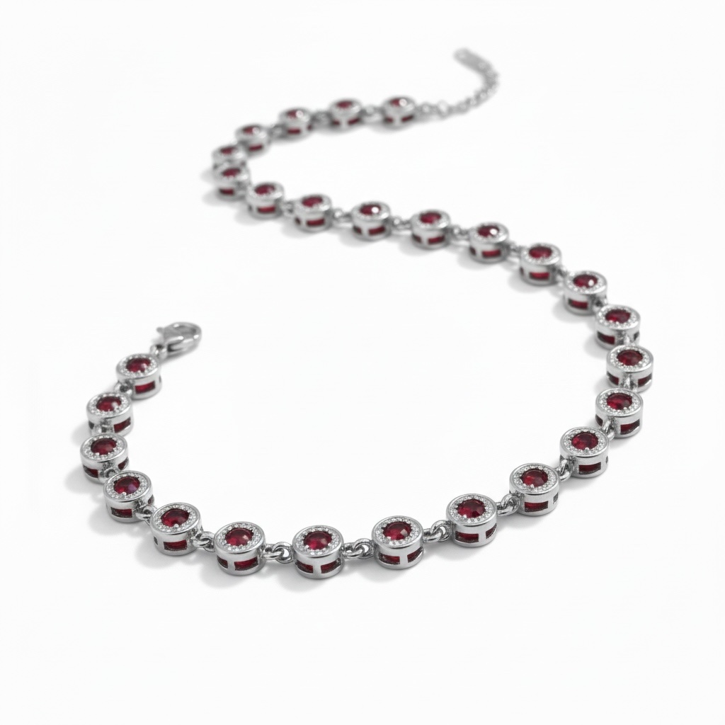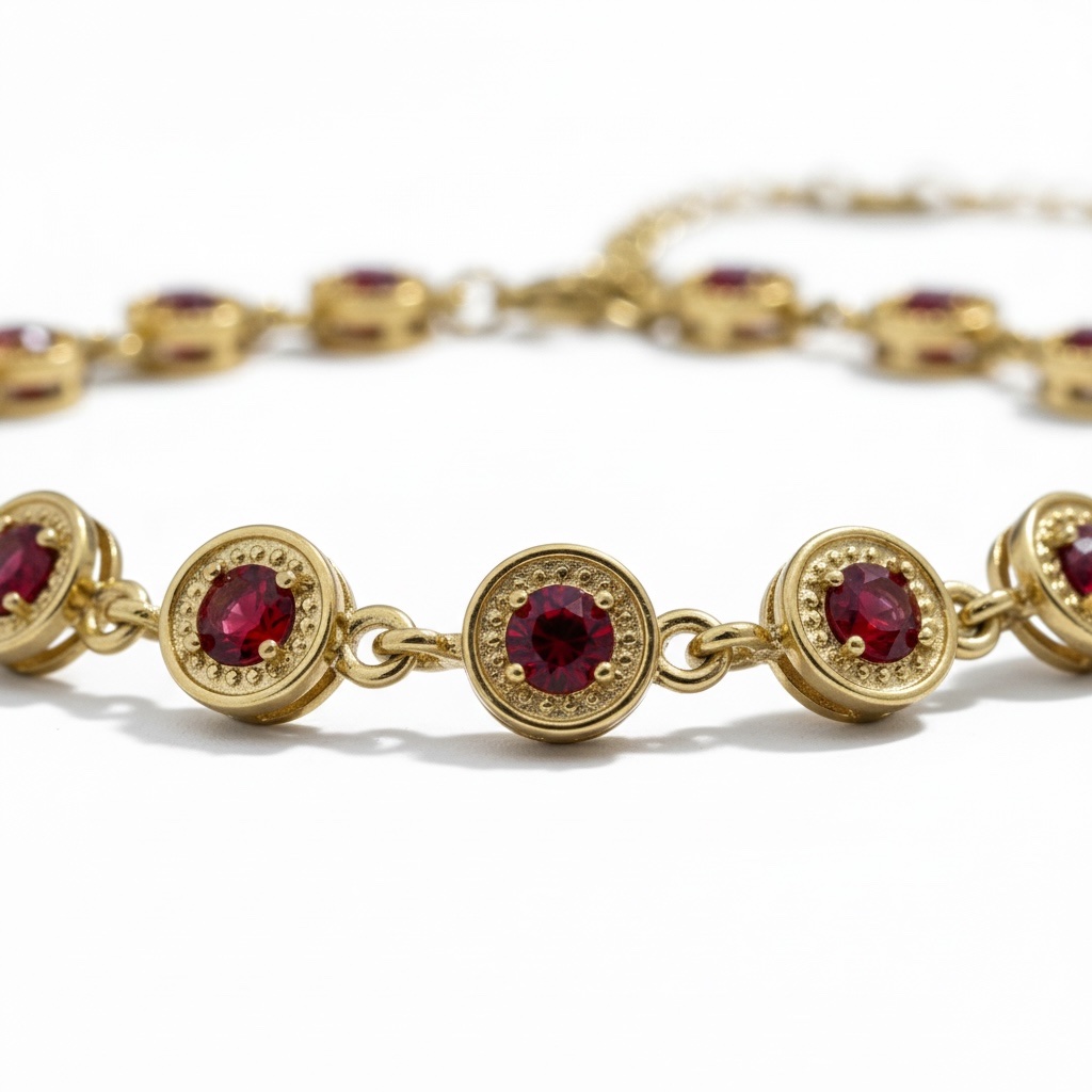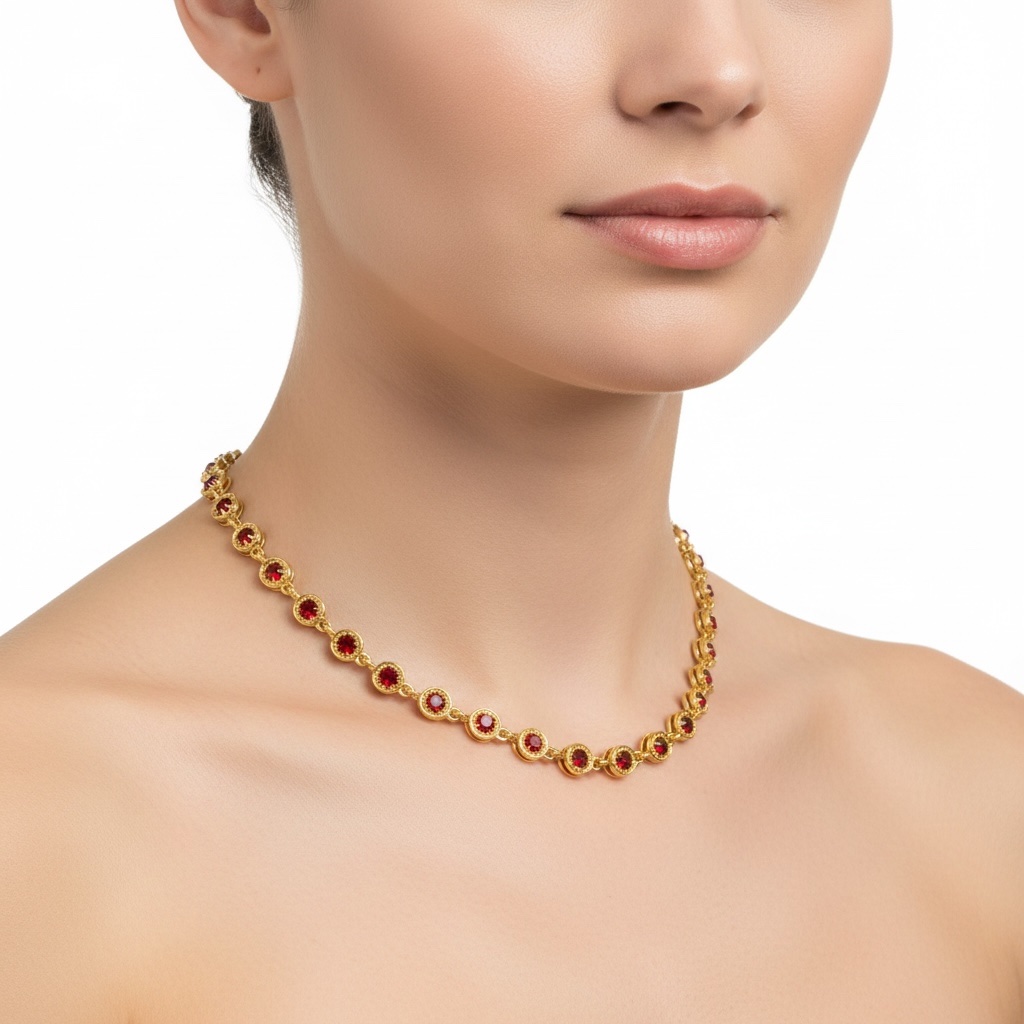 Το Ruby Circle Necklace είναι ένα κομψό και διαχρονικό κολιέ που ξεχωρίζει χάρη στις στρογγυλές κόκκινες πέτρες του, οι οποίες χαρίζουν ένταση και λάμψη σε κάθε εμφάνιση. Ο minimal αλλά ταυτόχρονα πολυτελής σχεδιασμός του το καθιστά ιδανική επιλογή τόσο για καθημερινό styling όσο και για πιο βραδινές εμφανίσεις.