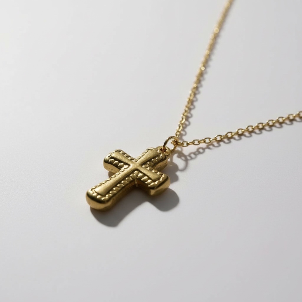 Το Textured Cross Necklace ξεχωρίζει για τον ανάγλυφο σχεδιασμό του, που προσθέτει χαρακτήρα και κομψότητα σε ένα διαχρονικό σύμβολο. Οι λεπτομέρειες στην επιφάνεια του σταυρού δημιουργούν ένα φίνο αλλά ουσιαστικό αποτέλεσμα, ιδανικό για κάθε στιγμή της ημέρας. Φοριέται άνετα μόνο του ή σε συνδυασμό με άλλα κοσμήματα, προσφέροντας στυλ και διαχρονική αξία. Κατασκευασμένο από ανοξείδωτο ατσάλι για ανθεκτικότητα και άνεση.