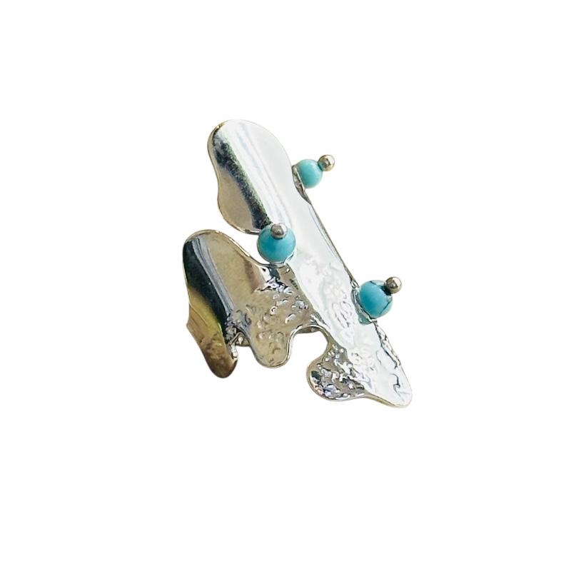 Το Wave Dot Ring είναι μια τολμηρή, αφαιρετική επιλογή για όσες αγαπούν το μοναδικό. Με “χειροποίητο” ύφος, ανάγλυφες επιφάνειες και μικρές τυρκουάζ πινελιές, δίνει στον καρπό σου προσωπικότητα και κίνηση. Ιδανικό για όσες δεν θέλουν να μοιάζουν με καμία άλλη.
