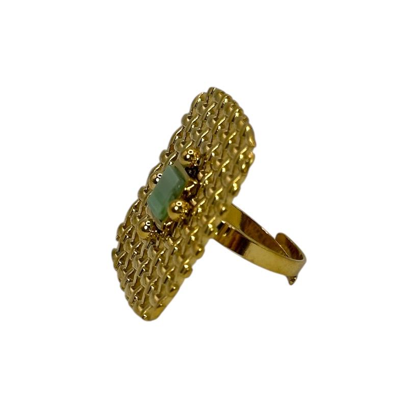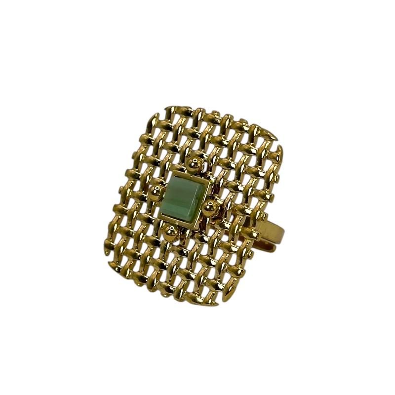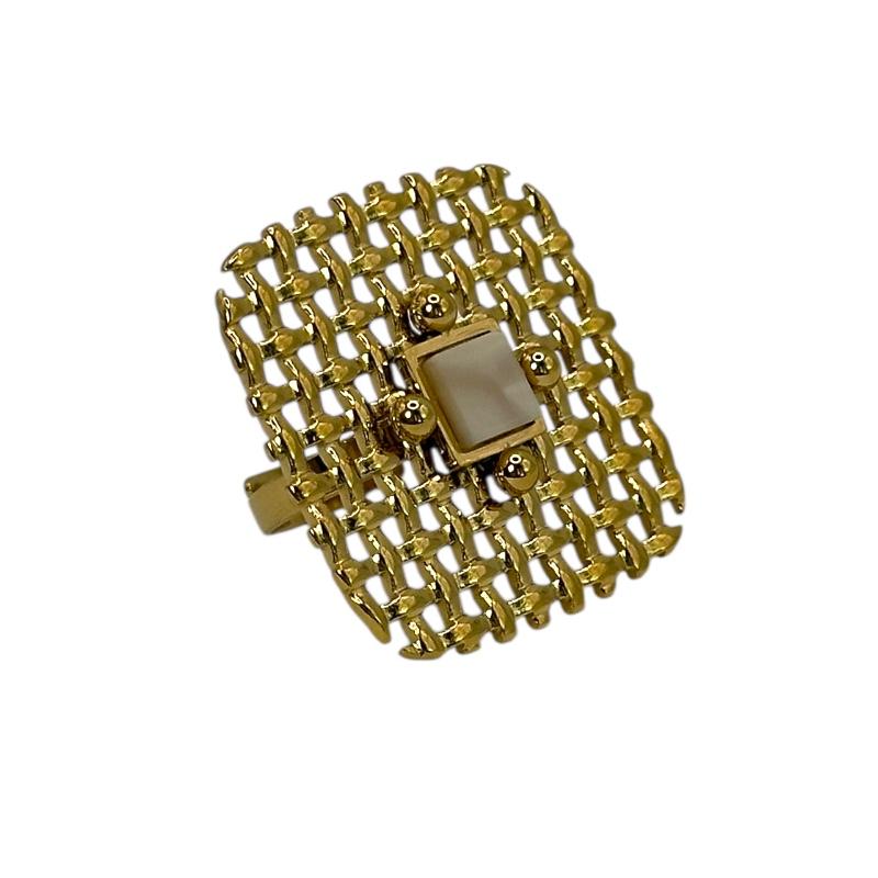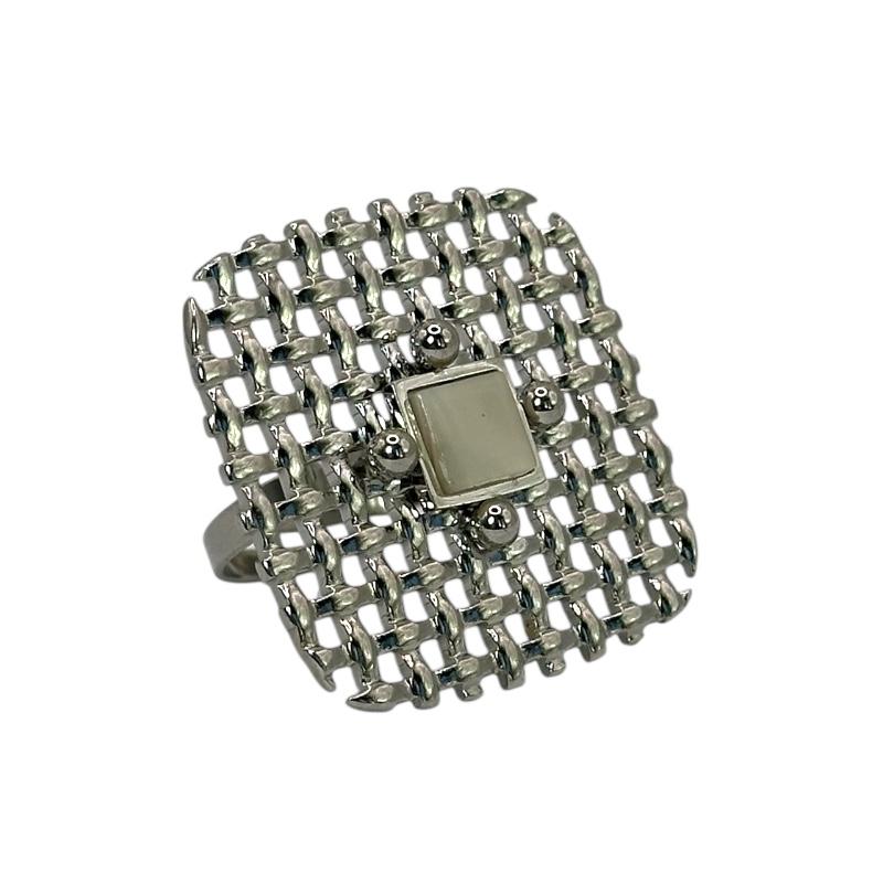 Πλεκτή υφή σε τετραγωνισμένο σχήμα – ένα δαχτυλίδι που κλέβει τις εντυπώσεις με το ιδιαίτερο design του.